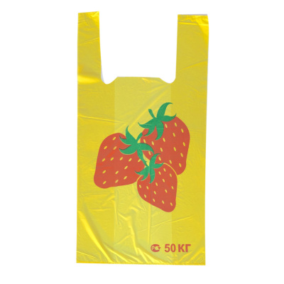 Пакет-майка ПНД 30+16х55=25 желтая "Клубничка"